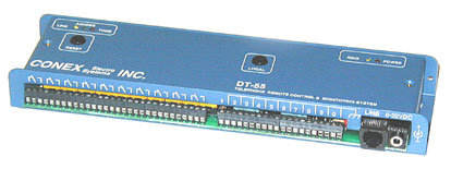 The DT-55 telephone remote control answers a phone line, accepts a user determined access code, then allows remote control of ten SPDT relays and the remote monitoring of ten external switch contacts or logic levels.